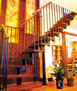 樓梯看上去很普通,但配著墻上的畫,就別有一番風味。(圖片來源:解放日報)