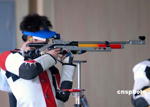 2007年10月26日,第六屆全國城市運動會“人保財險”杯射擊比賽在武漢關山射擊培訓中心鳴槍開賽。來自溫州市代表隊運動員朱啟南以703.7環的總成績,輕松奪得男子10米氣步槍60發決賽金牌,超過702.7環的世界紀錄和703.4環的全國紀錄;石家莊市代表隊運動員張強獲銀牌,杭州市代表隊運動員吳佳寧獲銅牌。中新社發 楚天行 攝