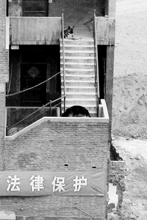 郭長(zhǎng)喜說,自己家本來養(yǎng)的有一條狗,但看到周圍鄰居拆遷遇到的問題,就花錢買了兩條牧羊犬。從此,三只狗天天為這個(gè)家站崗放哨。記者采訪過程中,一只牧羊犬一直臥在露天樓梯上,目光炯炯的望著四周。