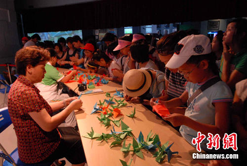 中新網上海8月15日電(記者 陳婷婷)巨大的燭光“心”,上千只紙鶴,15日,上海世博園區游客在全國哀悼日以特殊的方式,寄托心中哀思,為災區人民祈福。