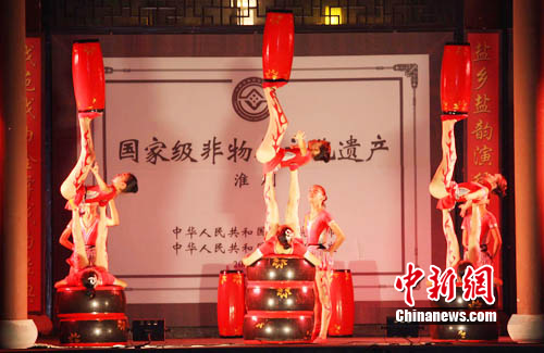 18日晚間,外賓們在鹽城水街參加游園活動,國家非物質文化遺產淮劇和雜技給外國朋友們奉上了一臺具有鹽城地方文化特色的視覺饕餮盛宴。鹽城市雜技團的雜技《綻放的蓓蕾》和《轉動的彩虹》美輪美奐,體現了鹽城雜技的特色和文化藝術,驚險而又漂亮的動作贏得了觀眾們不時的喝彩。江蘇省淮劇團的淮劇表演可謂是文武全套。國家一級演員黃萍和薛建華的文戲《預備員》選段,向外賓展示了淮劇韻味十足的唱腔和優美的身段。而展示武戲《將軍令》的表演者皆是16歲左右的淮劇新生代學生,他們基本功扎實的武戲表演惹得臺下觀眾叫好聲不斷。