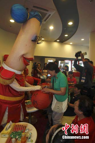 館內“可口可樂快樂工坊”的明星人物“喇叭姐姐”親自向6組網(wǎng)友家庭贈送了由一名殘障書法愛好者親手繪制的中秋紙燈籠,每個燈籠上都提有一句古典詩詞。