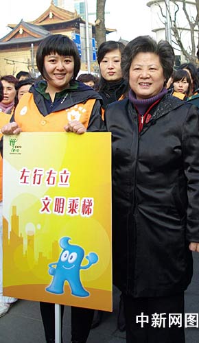 上海世博會倒計時四百天來臨之際,位于上海繁華城區的靜安區啟動“公共秩序日”集體行動,聚焦行路、駕車、停車、讓座、乘車、先下后上、乘電梯等七大類公共場所文明行為,八支由社區居民、郵政人員、學生等組成的志愿者服務隊在此間亮相。