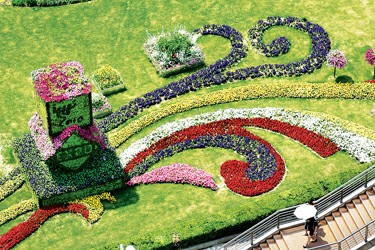 由長寧綠化園林工人精心設計建造的“魔方”綠雕造型,正面采用紅綠草構成世博會的英文簡稱“EXPO”和世博會會徽,營造世博氣氛,各色草花色彩滿溢,綠雕與鮮花的組合相得益彰。
