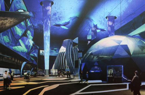 上海世博會主題館——未來館分為“昨日之夢”、“理想與實踐”、“多種可能性”、“夢想正在實現(xiàn)”四個部分。展館從“昨日之夢”開始重溫人類的實踐過程,運用影片、書籍和雕塑等方式展示從古至今人們對未來城市的幻想、設計與實踐,并向參觀者展現(xiàn)當今的實踐成果和未來城市是建立在今日挑戰(zhàn)基礎上的理念。