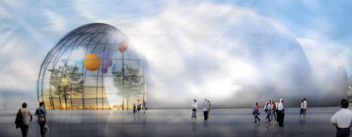 9月14日,2010年上海世博會奇特建筑之一——世界氣象館“云中水滴”主體結構亮相,預計于今年底竣工。由世界氣象組織聯合中國氣象局共建的世界氣象館位于浦東,與聯合國館為鄰,占地面積2000平方米,是上海世博會上唯一的國際組織自建館。展館外觀采用亮白色膜結構,外形呈云狀,膜布上均勻布滿噴霧點。當噴霧全部開啟時,如一朵飄浮在霧氣中若隱若現的白云。如果此時陽光高度角恰好小于42度,游客就可以在世博園區內欣賞到“霧中彩虹”景觀。 (鈕一新)