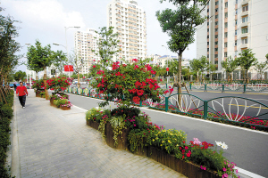 記者發現,除人行道上的綠化外,各老式小區改造也獨具匠心。在一些臨街的老式小區前,有關部門用管狀物排列組合成不同圖案,并補植綠化帶。各小區的大門也翻新改建,造型猶如一朵朵浪花。市民羅阿姨告訴記者:“過去兩堵土墻一扇鐵門,十分陳舊,如今拗出造型,進出都是一景。”