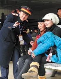 “您好,有什么需要為您服務(wù)的嗎?”在鐵路上海站售票大廳的 “程薇服務(wù)臺(tái)”,全國(guó)用戶滿意服務(wù)明星從上珠正熱情招呼著一位70多歲的老人。老人想要了解從上海開往香港九龍的列車時(shí)刻表,從上珠很快從電腦中調(diào)出資料,給了老人滿意的答復(fù)。從上珠告訴記者,老弱病殘?jiān)械戎攸c(diǎn)關(guān)注人群在他們這里購(gòu)票后,如需相關(guān)的接送服務(wù),他們會(huì)與設(shè)在進(jìn)站大廳的 “張慶桓服務(wù)臺(tái)”聯(lián)系,由工作人員負(fù)責(zé)護(hù)送到候車室,并向所搭乘列車的列車長(zhǎng)進(jìn)行告知,給予特殊照顧。