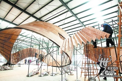 據(jù)悉,目前湖南館的地臺(tái)的鋼架、環(huán)體的胎架和其中一個(gè)環(huán)體以及投影機(jī)的桁架已經(jīng)基本完成,也將于近期啟運(yùn)到上海。相關(guān)的后續(xù)搭建工作計(jì)劃于4月15日前完成并投入試運(yùn)營(yíng)。整個(gè)展館的組裝過程將歷時(shí)近100天。