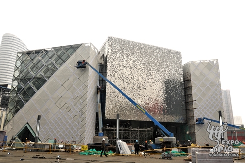 16日,隨著正立面最后一根腳手架安全落地,上海世博會國家電網館終于展露全貌,以其獨特的“魔盒”造型迎接世博會的到來。