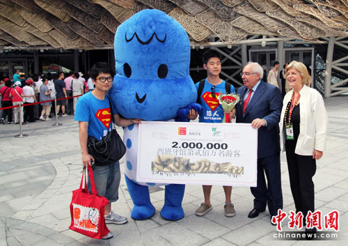 中新網(wǎng)上海6月22日電(記者 殷春永)上海世博會西班牙館21日迎來第200萬名游客,除外觀酷似“大籃子”的造型給人們難忘的印象外,該館的接待人員能說西班牙語、中文和英語,亦頗受游客贊賞。