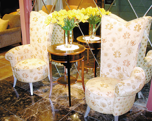 既然名為情侶椅,當然最適宜于擺放在私密的臥室內。也許正應了情侶之間容易存在的默契,相處時感覺甜蜜,獨處時也要有自己的美好心情,所以雖然兩張椅子的扶手采取的是不對稱的設計,讓一對情侶椅子一個沒有左扶手、一個沒了右扶手,單獨看一張時卻也獨特,當兩張椅子合二為一的時候,又是一個十分貼合的雙人坐椅,高高的靠背弧度優美,坐下去時身心都得到了徹底的放松。用手輕輕觸摸布藝表面,可以感覺到椅子上的精致繡花,溫馨而有立體感。