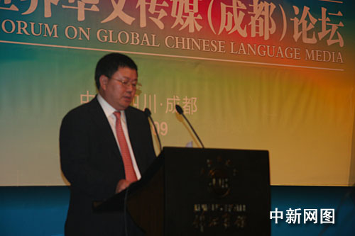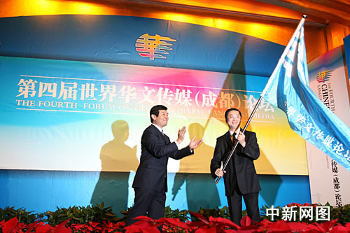 由中國新聞社會社、四川省人民政府主辦,中共成都市委、成都市人民政府承辦的第四屆世界華文傳媒論壇,在國僑辦、中新社的指導下,在海內外華文媒體的共同參與和大力支持下,取得了圓滿成功,即將落下帷幕。在此,我謹代表中共成都市委、成都市人民政府,向論壇的成功舉辦表示熱烈的祝賀!向國僑辦、中新社、國家有關部委以及世界各地的傳媒表示衷心的感謝!