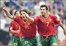 雖然自從1966年以來,葡萄牙隊僅僅3次打進過世界杯決賽圈,而上一次是在1986年,雖然他們在世界杯歷史上最好戰績也僅是1966年的第三名,但這這個國家卻從來不缺少天才球星。葡萄牙歷史上最成功球星"黑豹"尤西比奧,不知在他的那個時代令多少足球專業人士所折腰。現在,那批在1989年和1991年連續兩年取得世界青年足球錦標賽冠軍,被稱為"黃金一代"的球星們也已經成長起來。費戈剛剛當選世界足球先生,而他的同胞魯伊-科斯塔也在意大利賽場書寫著自己的輝煌。