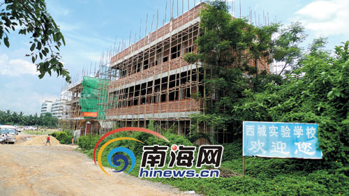昨天下午,記者趕到這2棟3層樓所處的位置看到:這2棟3層樓的違建建在?谀虾4蟮篮P沔傂麓逦鞒菍嶒瀸W校的門口,與海秀鎮政府相鄰。目前這2棟房子的主體已完工,工人們還搭著腳手架對樓房的外墻及室內進行粉飾裝修。
