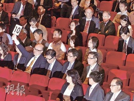 昨日賣地歷時40分鐘,共47口價,由4個財團包括新世界、信和、南豐及一個派出職員作代表的財團競逐。拍賣開價80億元,承價至82億元,拍賣官已開始倒數(shù)“第一次”,不再說此叫價尚未到達底價,反映82億元甚可能已達到或超出政府秘而不宣的底價,若按104億元成交價計,估計高出政府底價約27%。