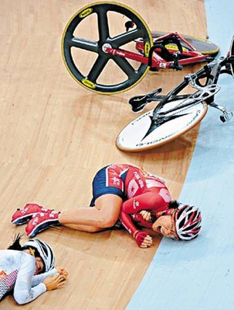 中新網11月17日電 據香港《星島日報》報道,廣州亞運女子場地記分賽,出現振奮人心的一幕。有“女版黃金寶”之稱的香港自行車選手黃蘊瑤,向世人示范了什么才是鋼鐵意志,她在比賽中段遇上嚴重意外,身體更被單車兩度輾過,但仍堅忍肋骨骨折及肺氣腫傷痛繼續比賽,終為香港取得一面“血淚銀牌”。頒獎后須坐輪椅離場的黃蘊瑤不時激動痛哭,令全場所有人動容。
