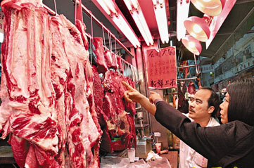 圖:香港活豬價格持續上升,肉檔檔主無奈地表示,貴貨難銷,市民難捱。(圖片來源:大公報)