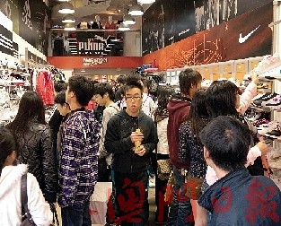 現(xiàn)場(chǎng)觀察,平均每3分鐘賣出一對(duì)球鞋,但鞋店負(fù)責(zé)人表示,雖人流暢旺,上周六生意額更達(dá)5萬左右,生意仍比去年少20%至30%。“去年收錢收到手軟,今年拿鞋拿到手軟!”顧客喜歡試鞋,卻未必購買。以往更常見家庭客,一次購買3、4雙鞋,今年顧客“一雙起、兩雙止”。