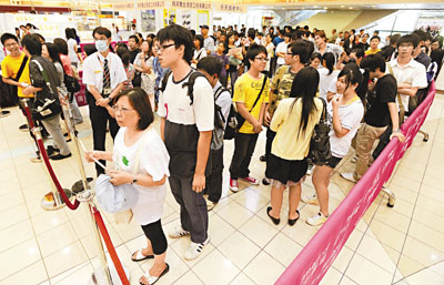 招聘會(huì)“常客”天然護(hù)理用品中心今年內(nèi)會(huì)擴(kuò)張20間分店,因此這次招聘會(huì)希望能夠招聘50位售貨員。該公司營(yíng)運(yùn)總監(jiān)紀(jì)雅麗指出,受金融海嘯影響,售貨員底薪連勤工獎(jiǎng)由去年的6800元下跌至今年的5800元,但若雇員通過(guò)3個(gè)月試用期,公司會(huì)將底薪連勤工獎(jiǎng)?wù){(diào)升至6800元。