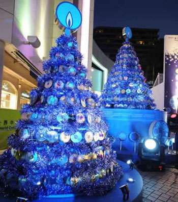 場內設置的3棵環保圣誕樹,則由超過6000張廢舊光盤制成,利用光盤反射自然光線達到裝飾效果。香港地球之友將在展覽結束后回收這些光盤,循環再造成塑料制品。