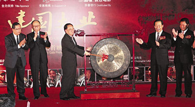 龍傳基金20日舉行《建國大業(yè)》慈善首映禮,籌得的善款將用以繼續(xù)推動(dòng)華人青年的培育工作。曾蔭權(quán)20日晚親自主持儀式,為首映禮鳴鑼。