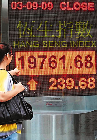 中新網9月4日電 據香港《文匯報》報道,A股勁升5%,帶動港股3日一度上升300點,高見19823點,全日收報19761.6點,升239.6點,成交額580億元。不過,期指大低水192點,對4日市況構成隱憂。