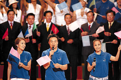 胡偉民也透露,歷時(shí)2小時(shí)的閉幕典禮,內(nèi)容精彩豐富,來自5個(gè)國家或地區(qū)的流行歌手,包括韓國的蔡妍、日本的中孝介、臺灣的任賢齊、內(nèi)地的朱哲琴及香港的陳奕迅,除獻(xiàn)唱自己的首本名曲,更會(huì)透過美妙歌曲,配合舞蹈員的動(dòng)人舞姿,唱出每個(gè)觸動(dòng)人心的東亞運(yùn)故事,包括運(yùn)動(dòng)員由訓(xùn)練至奪取獎(jiǎng)牌的經(jīng)過、及義工參與東亞運(yùn)過程及所作出的貢獻(xiàn)。
