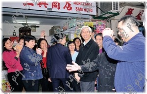 崔世安巡區,傳媒蜂擁而至,所到之處無不吸引居民圍觀。不少居民隔住人群高喊自己的訴求,希望崔世安解決就業問題,繼續“派錢”解困。不少商鋪做足準備,崔世安與負責人、職員互相拜年問好,不時詢問經營情況。在探訪關閘一藥房時,還特別詢問藥劑師在什么地方畢業,藥房生意好嗎?