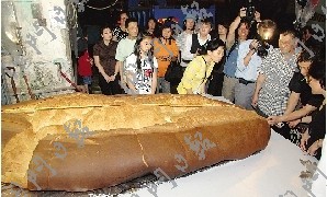 中新網(wǎng)5月22日電 《澳門日報》今日在頭條刊發(fā)報道稱,由澳門金馬輪咖啡餅店焗制的巨型豬扒包于21日舉行的“愛在澳門——第二屆世紀(jì)婚禮兩岸四地2009”活動開幕儀式中亮相,將申請成為吉尼斯世界紀(jì)錄大全中的全球最大的豬扒包。21日不少與會者均對巨型豬扒包十分感興趣,紛紛與包合照,場面熱鬧。