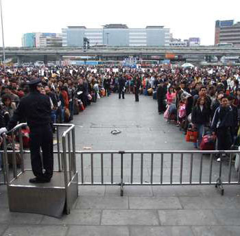 今年春運較去年提前,特別是內地施行新休假制度后,“五一”取消長假,赴港游客流提前涌現在春運期間。廣東省公安出入境部門人士預計,2008年春節前夕及期間經深圳赴港個人游及團隊旅客,可望同比去年增長20%倒30%,而北上的香港人同比也將有10%多的增長。因此,今年春運期間,港澳出入境流連同旅游探親流、放假學生流、節日商務流及外來務工流匯合,凸現客流高度、高峰、時段“三大集中”,廣深、廣九線疏運難度加大。