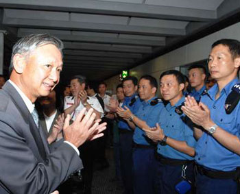 中新網(wǎng)5月23日電 據(jù)香港大公報(bào)報(bào)道,參與四川大地震搜救工作的香港搜救隊(duì)成員,22日晚自成都返港,獲得英雄式的歡迎。香港保安局局長(zhǎng)李少光在歡迎式上致詞,盛贊各人表現(xiàn)英勇和專(zhuān)業(yè),不畏艱辛的無(wú)私奉獻(xiàn),令港人感到驕傲。儀式完成后,隊(duì)員上前輕吻妻兒,更有人不禁流下男兒淚。