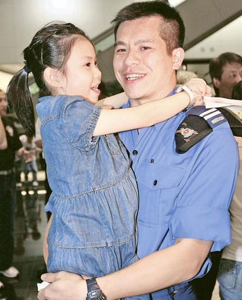 參與歡迎儀式的尚有搜救隊(duì)的家屬和同事,隊(duì)員在接受嘉勉期間,一直強(qiáng)忍悲喜交集的心情,待儀式完成后,數(shù)十人便沖前,輕吻妻兒和與曾出生入死的同事相擁抱,更有人不禁流下男兒淚,訴說(shuō)救援行動(dòng)中所遇驚險(xiǎn)難忘的經(jīng)歷,分享喜與悲。