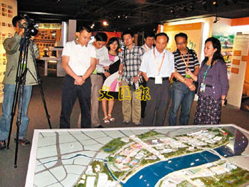 司錦泉副部長與港澳媒體記者參觀世博園區模型。(圖片來源:文匯報)