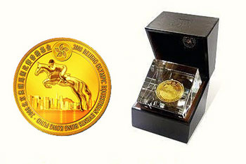 中新網10月19日電 “2008北京奧運馬術比賽香港基金”委員會首次推出官方紀念章籌款。紀念章以運動員馳馬、在區徽下跨越維港上空為主題,基金委員會對紀念章寄予厚望,目標籌得1,000萬元,繼續資助推廣奧運馬術賽。