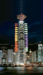 據(jù)香港媒體報道,據(jù)介紹,12月31日當晚,11時43分維港先上演“幻彩詠香江”,到了07年最后20秒,國金二期外墻便會開始發(fā)放煙火,附近4幢大廈的外墻亦會有液晶體大熒幕,會同步顯示時間,讓市民跟著倒數(shù)。踏入08年第一秒,外墻會發(fā)放“2008”字樣的煙火。緊接的是分半鐘加強版多媒體燈光、煙火、音樂匯演,國金會有8幕特別設(shè)計的煙火圖案,令這座維港兩岸最高建筑物更矚目。