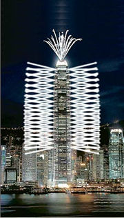 負責煙火效果的毛偉成表示,國金外墻將設(shè)有44個煙火裝置,放于大廈140至420米間。他說,是次最困難是要將煙火裝置設(shè)于大廈外墻,要利用大廈建構(gòu)裝嵌,加上國金是全港最高建筑物,故工人要由吊船逐一安裝,12名工人要花大約8日時間。