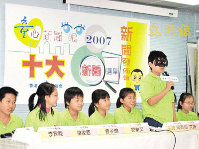 負責舉辦選舉的香港小童群益會第4屆“香港小特首”,上月分別通過表格及網上投票進行“童心新聞眼2007十大新聞選舉”,吸引28996名小四到中三學生參與投票,從30則候選新聞中選出心中的十大新聞,榮獲首3名的新聞依次為“熊貓‘盈盈’、‘樂樂’抵港 慶祝回歸10周年”、“哈利波特大結局 風靡全球”及“嫦娥一號發射成功 探月夢想逐步成真”,分別取得18172票、16474票及15054票。