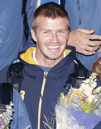 6日在機場及酒店僅有數十名球迷守候“萬人迷”,撇除湊熱鬧的路人,數目較到場采訪的傳媒及保安還少。見慣大場面的貝克漢姆剛出通道便面露招牌笑容,但刻意低調的他僅在大堂逗留約5分鐘便離開,但他輕輕揮手已吸引女球迷大叫,令隊友及教練淪為陪襯。至于貝克漢姆妻子維多利亞及兒子則未見隨行。