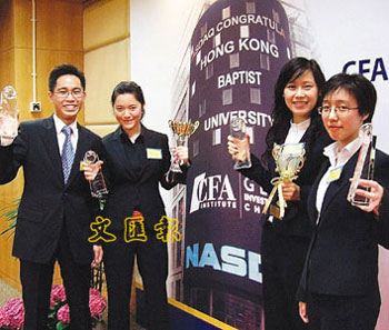 中新網(wǎng)5月13日電 據(jù)香港文匯報報道,投資炒股是香港市民生活的一部分,近年更涌現(xiàn)出不少年輕“股神”。香港浸會大學工商管理學院4位本科生通過7個月的多輪比賽,打敗全球79隊參加者,是香港學生首次奪得在紐約舉行的“全球投資分析比賽”總冠軍。