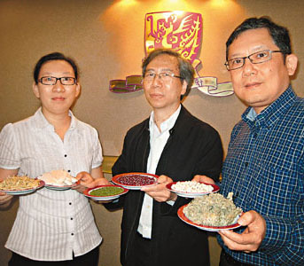 (左起)趙利、謝俊仁及車鎮濤展示夏季食療。(圖片來源:文匯報)