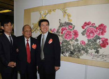 為了協(xié)助四川災(zāi)區(qū)籌得更多善款,17日的圖片展場內(nèi)設(shè)立“愛心書畫義賣區(qū)”。曾憲梓17日在開幕儀式后,由專人陪同下到“義賣區(qū)”觀賞書畫作品。其后,曾憲梓看中由詹庚西捐出、以盛放的牡丹花為題的《國色天香》,并以高于底價(jià)的50萬元購買。