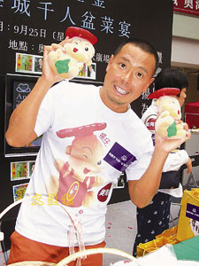 顏福偉涉嫌借醉非禮男的士司機被捕。圖為年前出席公開活動時,展示Q版公仔合照。(圖片來源:香港文匯報)