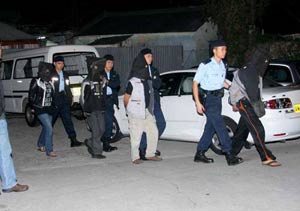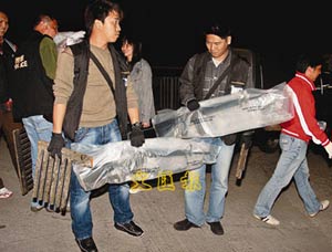 在奕園村回收?qǐng)霰徊兜?男2女,年齡由20至50歲,警方經(jīng)初步調(diào)查,懷疑他們有黑社會(huì)背景,部分人更有刑事案底。