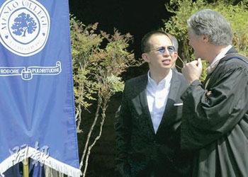 曾在Menlo高中就讀的李澤楷,11日應南灣Menlo College邀請,擔任畢業禮的主講嘉賓。典禮結束后,他回答了幾個提問。戴著太陽眼鏡的他說,只會在美國逗留數天處理業務,畢業禮后數小時便要飛往洛杉磯。至于有關其感情事,如是否已與梁洛施訂婚?李澤楷一概不回應,就連記者問他是否有意發展娛樂事業時,李澤楷也只是笑笑說:“我不會答你的!