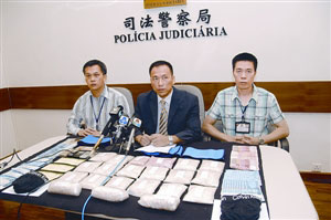 司警局發(fā)言人周偉光7日表示,這次是收到美國緝毒局經(jīng)國際刑警向澳門提供的線索,懷疑一名臺灣男子經(jīng)澳門偷運毒品往印度尼西亞。警方根據(jù)資料鎖定追查案中48歲葉姓男子,他6日下午5時許與另外兩名被捕疑人由關(guān)閘一同進入澳門,隨即被司警人員監(jiān)視。