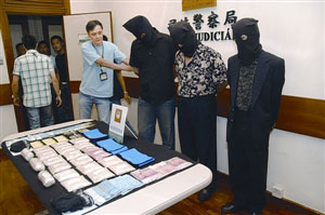 涉嫌販毒被捕的三名臺灣男子兩人姓葉,分別39及48歲,兩人報稱無業(yè);另一人姓陳,40歲,報稱工人,分別來自臺灣桃園及嘉義市。其中48歲葉姓男子有多次往返內(nèi)地、澳門及印度尼西亞的紀錄,司警懷疑曾多次由內(nèi)地經(jīng)澳門偷運毒品前往印度尼西亞,相信是案中主犯。有人被捕后向警方承認只是替販毒集團偷運毒品,每次賺取大約1萬元人民幣的報酬。