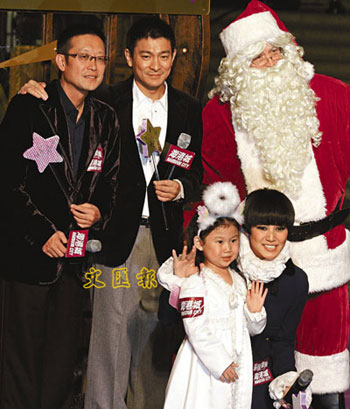 金融海嘯影響香港市道,但圣誕燈飾亮起添了幾分燦爛繽紛,華仔也在一顆星星飾物之上寫上“幸福”二字,祝愿香港人永遠都活得幸福。何韻詩都希望香港人能多“關注”和“包容”,劉偉強也祝愿“世界和平”。至于沒有出席的女主角舒淇,她也一早拍了片段,向市民講圣誕快樂。