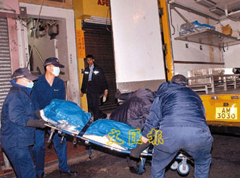 荃灣新村街被殺鳳姐尸體,由仵工送往殮房。(圖片來源:文匯報(bào))