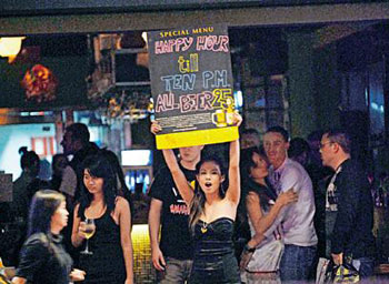 金融海嘯令香港酒吧生意一落千丈,美國軍艦這次訪港,預計會帶旺尖沙咀、灣仔及銅鑼灣一帶的消費,特別為區內的酒吧帶來“及時雨”。不少酒吧東主得悉有大批美軍抵港,如久旱逢甘露,有酒吧更在門外掛上美國國旗作招徠,而大批衣著性感女郎,比平時更早“開工”,未及黃昏已經在街頭向途經大兵拋媚眼。